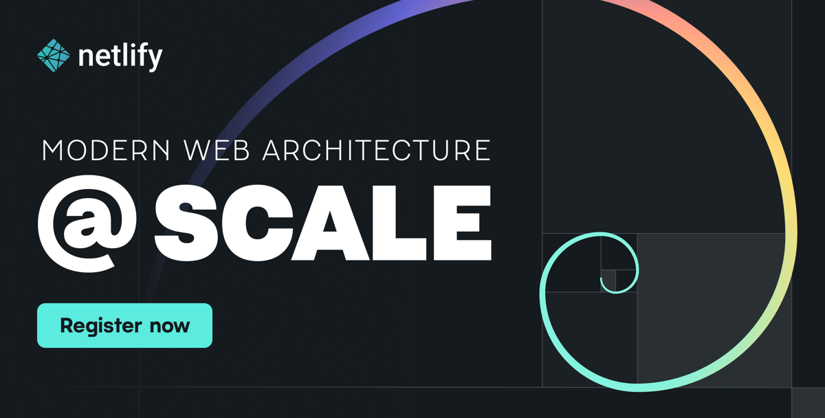 Running a business site or app on the Jamstack and eager to learn best practices to building at scale while removing complexity? Join us for these conversations and more at next Tuesday's Modern Web Architecture @Scale. Plus, hear some exciting announcements from Netlify!